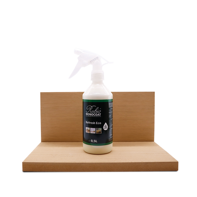 Refresh Eco is a ready-to-use sprayable product that refreshes and restores all wooden surfaces that have been treated with oil.